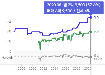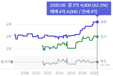 매매가는 2018년 상반기부터 상승세를 타면서 현재 6억을 돌파한 모습입니다.