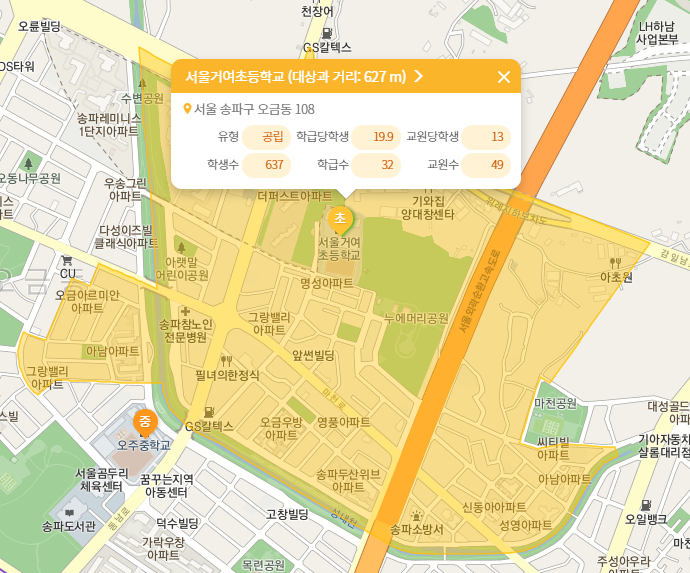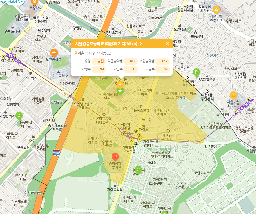 (1) 거여초등학교: 도보 10분 소요